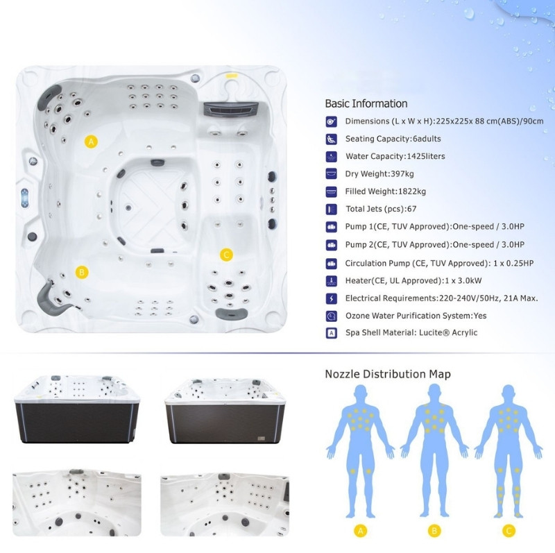With room for six adults and 67 precision jets, it delivers a full-body hydrotherapy experience that’s second to none. Whether you’re relaxing after a long day or hosting friends, this hot tub combines comfort, performance, and style in one sleek unit.